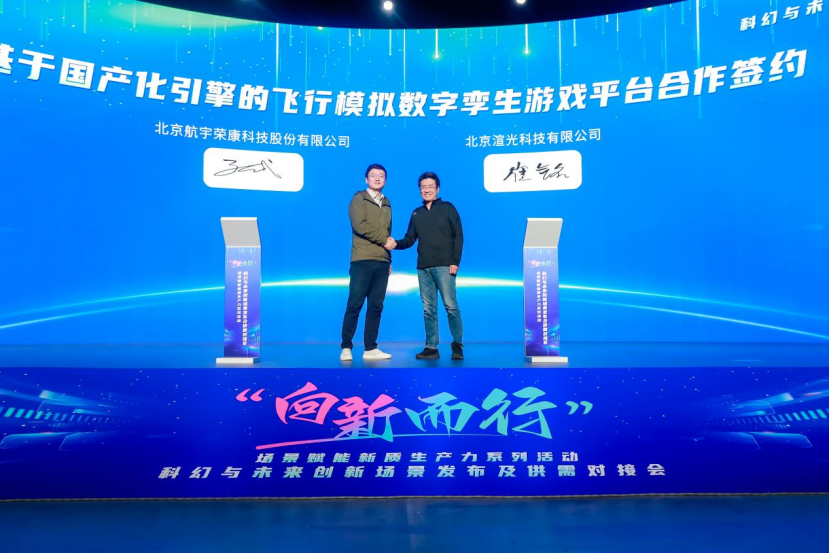 中电科五十四所与中关村通力公司将共建“面向6G通感算一体化智能网络工程中心”,布局未来数字智能网络底座,在通感算融合、空天地一体化等方向开展技术攻关,为新质生产力提供关键支撑。中关村通力公司与流金岁月联合打造“数字智能创新中心”,围绕内容生成、智能交互、虚实融合等场景开展技术实验,加速数字AI与空间AI的协同创新。同时,航宇荣康与渲光科技将合作建设“国产化引擎飞行模拟数字孪生游戏平台”,推动国产引擎在航空仿真、数字孪生与三维内容领域的全链路应用拓展。