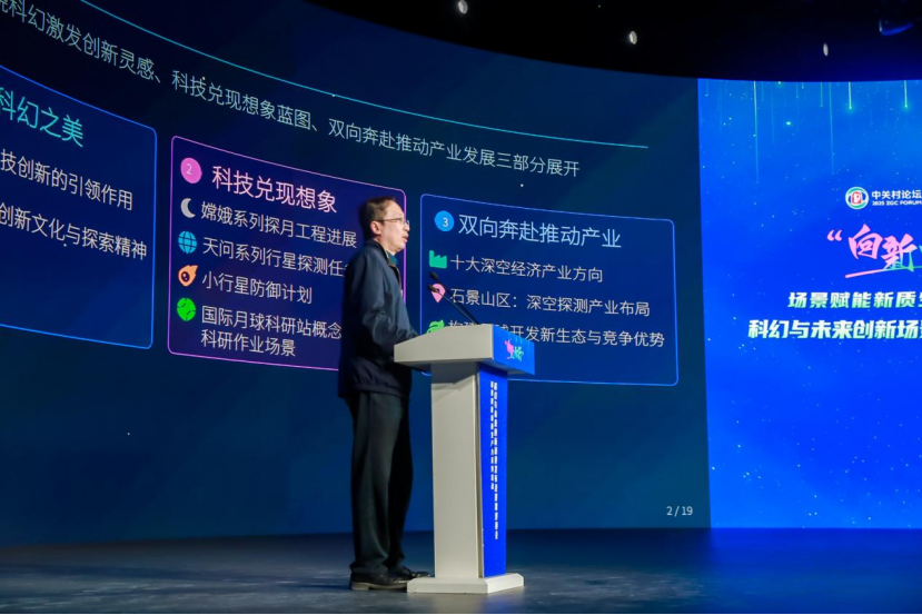 深空探测实验室党委委员、副总工程师、系统院院长陈琦以《科幻与科技:以想象力开启深空探测新篇章》为题,探讨科幻创意如何在深空探测领域变为技术路线。从登月工程到未来星际探索场景,他指出想象力不仅是科研的起点,更是科技进步的重要资源,科幻能够激发跨学科创新,推动国家战略任务提前布局。