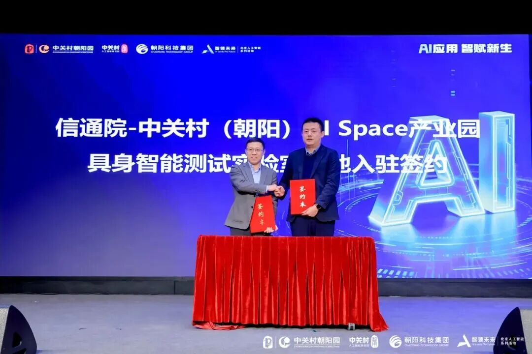 会上,顶尖企业、科研机构、投资平台等行业大咖齐聚一堂,共同见证中关村(朝阳)AI Space产业园揭牌、朝阳区人工智能一站式服务中心发布、具身智能测试实验室以及具身智能产业投资基金入驻签约等重磅成果发布。