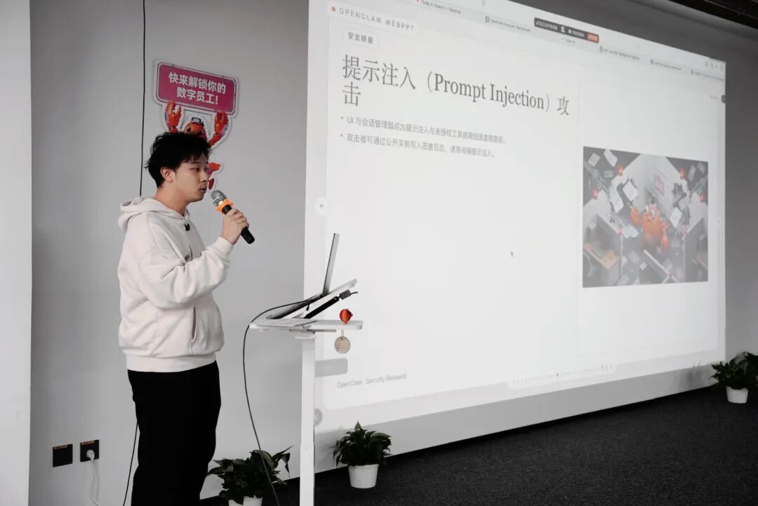 在核心技术分享环节,研发部韩丁炜老师为大家深度拆解了OpenClaw技术内核,从架构设计、核心优势到实际应用中的安全风险层层剖析、干货满满。通过专业讲解帮助大家厘清“AI小龙虾”的技术逻辑与应用底层思路,同时对其实际使用中的安全边界形成清晰且深入的认知。