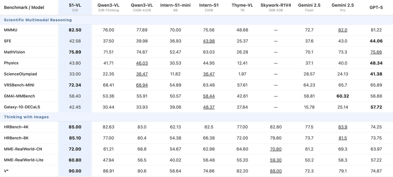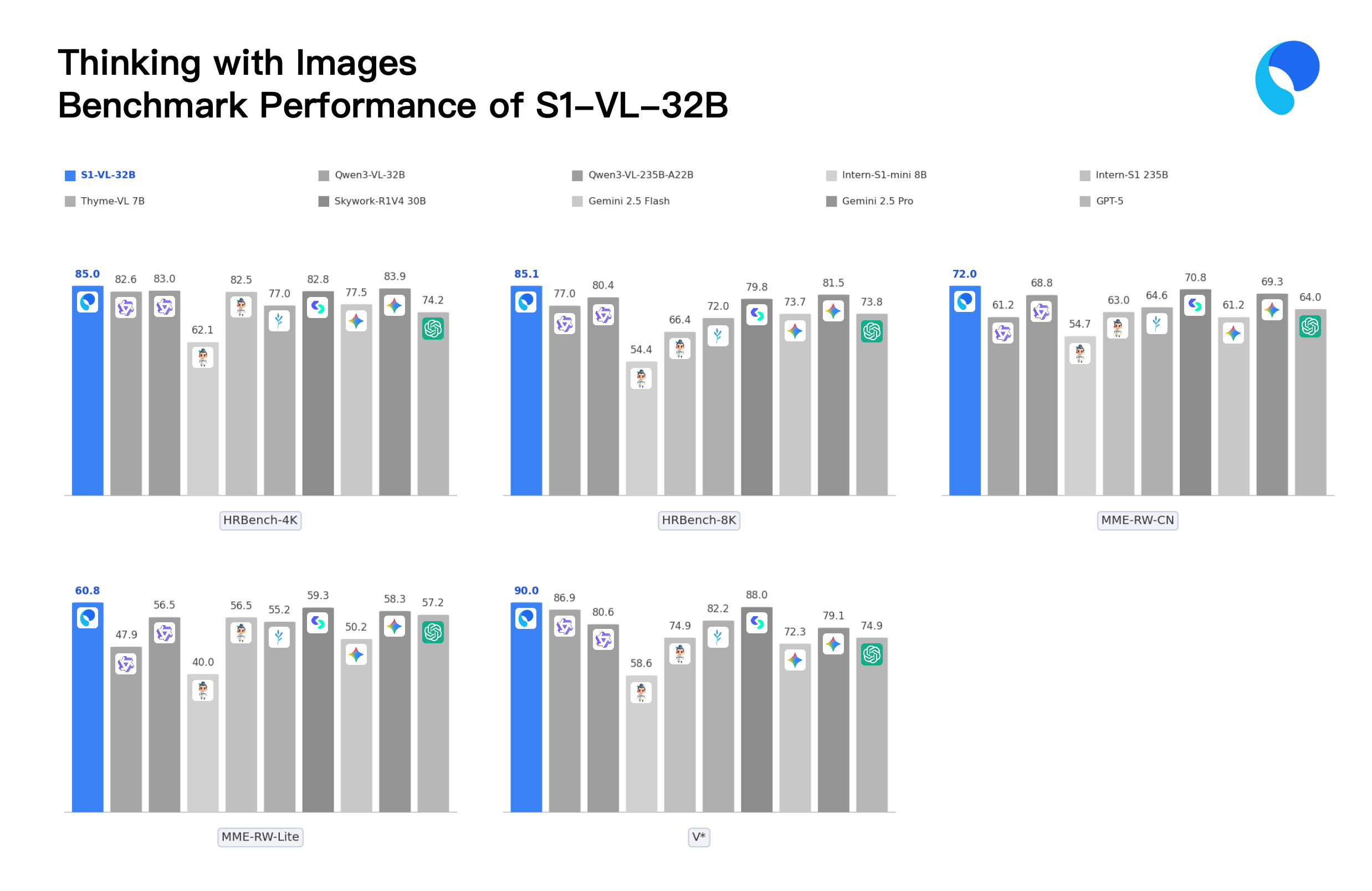 S1-VL-32B在复杂科研图像理解、多步逻辑分析和高分辨率视觉推理任务中具备明显优势。