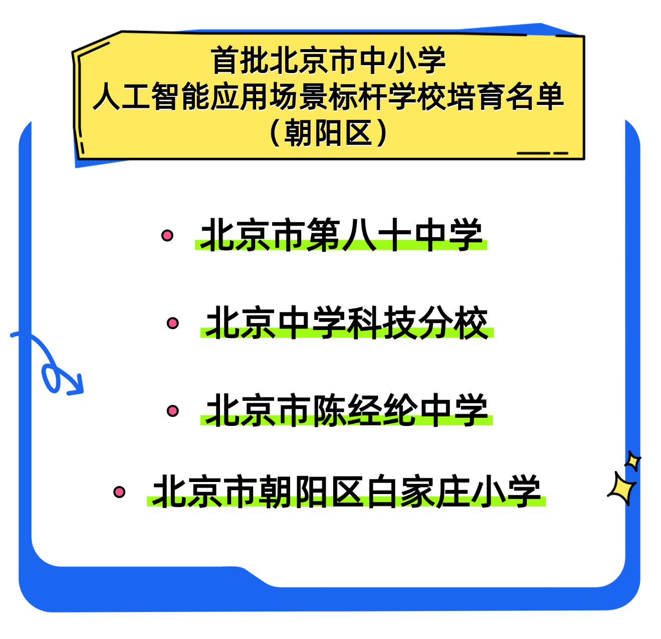 各标杆学校将联合集团校成员,积极承担市级人工智能应用试点等任务,深化人工智能在教学管理、课程改革、学生个性化发展等方面典型应用,充分发挥标杆辐射带动作用,助力“宜学”朝阳建设,服务首都教育高质量发展。