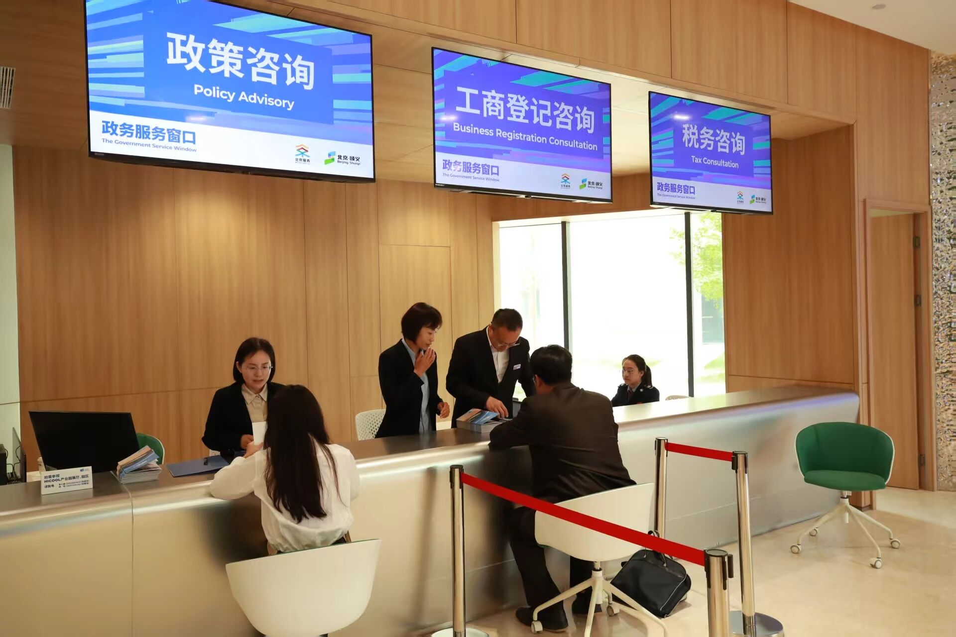 2025年5月8日,HICOOL产业园政务服务窗口揭牌,作为园区企业“家门口的政务服务站”,可为创业者提供涵盖工商注册、税务登记、科技政策申报、北京市工作居住证和外国人来华工作许可业务咨询受理等“一窗通办”的贴心服务。