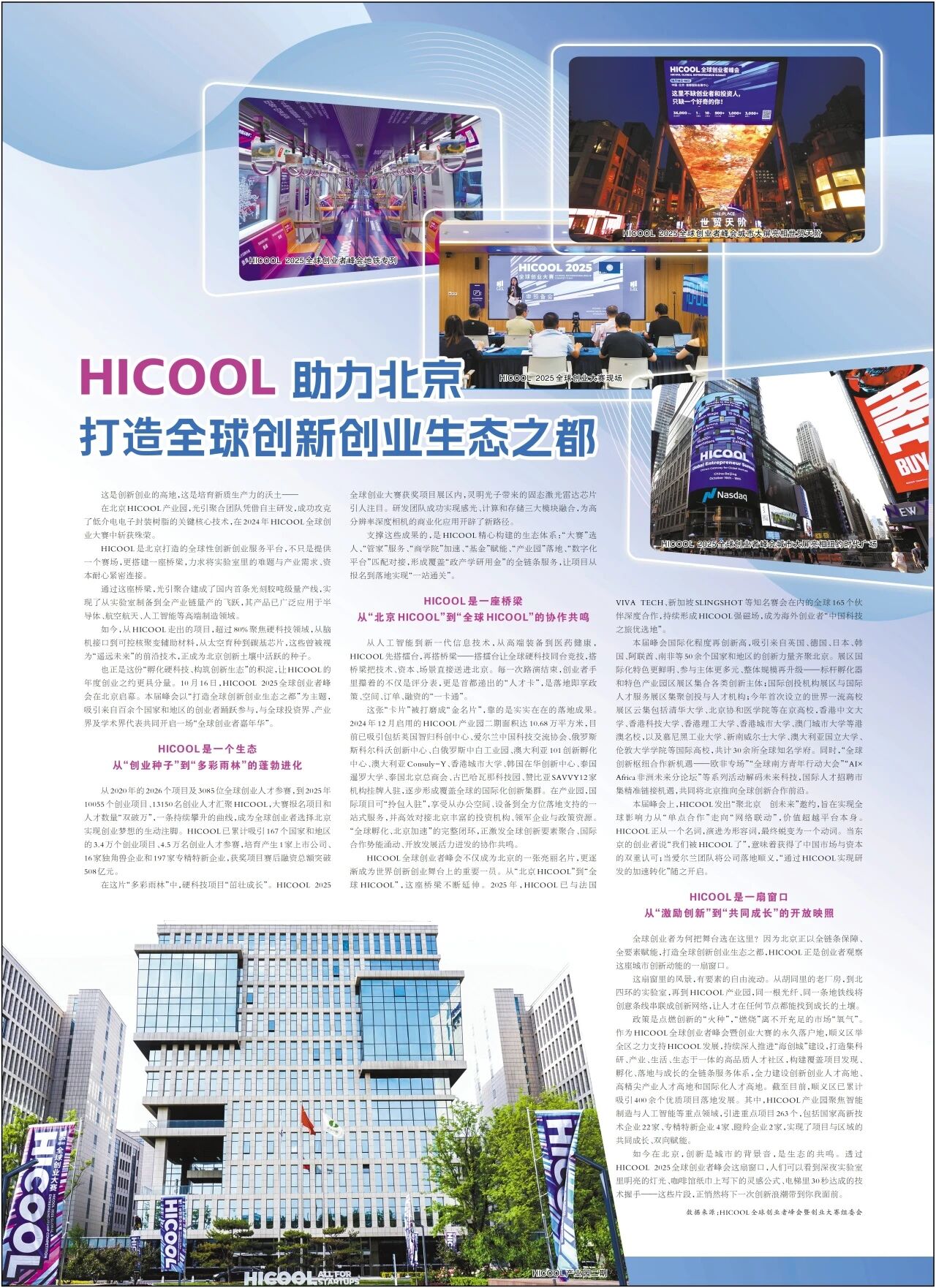 10月16日出版的《人民日报》第8版,专版刊发《HICOOL助力北京打造全球创新创业生态之都》。全文如下:
