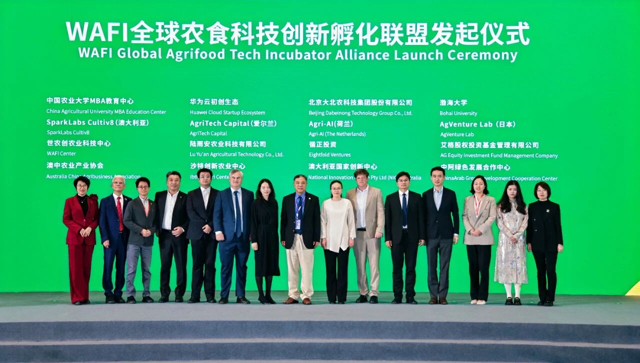 论坛期间,举行了“全球农食科技创新孵化联盟” 发起仪式。该联盟由中国农业大学MBA教育中心、华为云初创生态、北京大北农科技集团股份有限公司、陆雨安农业科技有限公司、AgriTech Capital、SparkLabs Cultiv8(澳大利亚)、AgVenture Lab(日本)、Agri-AI(荷兰)、艾格股权投资基金管理有限公司、循正投资、渤海大学、世农创农业科技中心、沙特创新农业中心、中阿绿色发展合作中心、澳大利亚NIC国家创新中心澳中农业产业协会共 16家机构共同发起,旨在整合全球农业科技资源,搭建 “技术研发 - 成果转化 - 投资落地 - 国际合作” 全链条服务平台。创始成员计划在技术共享、项目孵化、人才交流、标准制定等方面深化分享合作,加快创新技术传播,助力全球农食行业应对粮食安全、气候变化挑战。
