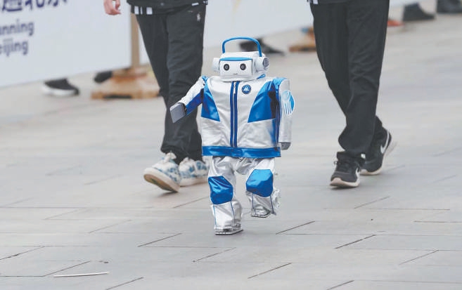 北京科技职业大学自主研发的“小巨人”将参加单机舞蹈、田径400米和1500米的比赛。本报记者 和冠欣摄
