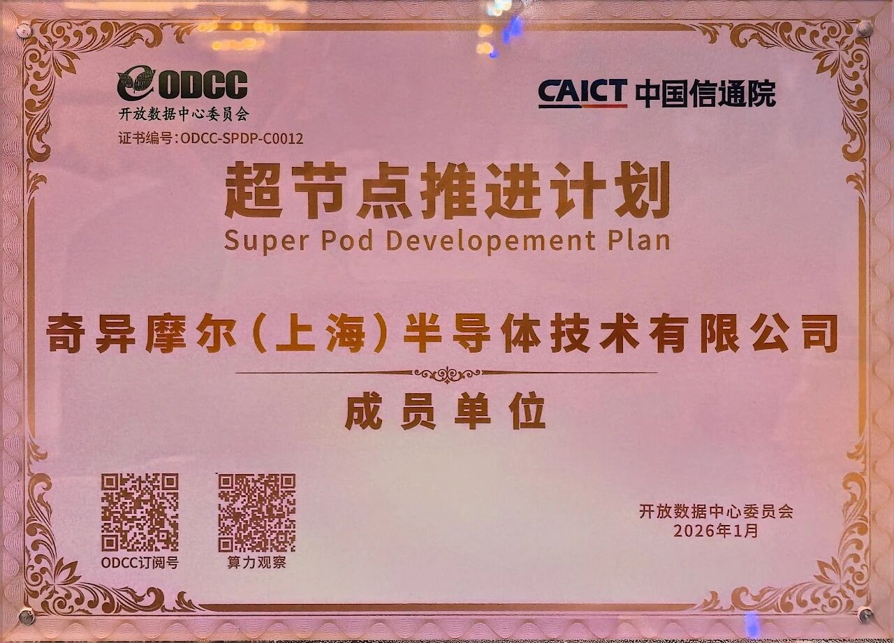 作为对奇异摩尔公司贡献的认可,在本次大会的超节点推进计划发布仪式上,奇异摩尔被正式授予 “超节点推进计划成员单位” 殊荣。同时,公司联合创始人祝俊东受聘担任 “超节点推进计划专家成员” 。这一双重身份标志着奇异摩尔将从组织与实践双重层面,更深入地与超节点应用领域伙伴携手,共同推进高性能超节点基础设施的构建与创新。