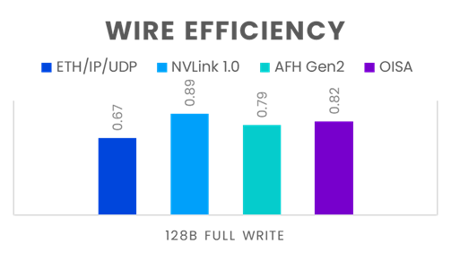 标准的以太网IP/UDP 报头是为异构芯片网络而设计的,然而Scale-up超节点互联使用的是域内同构芯片联接方式,以小包传输占主流流量,所以使用传统标准的以太网IP/UDP报文对于超节点同构网络来说是一种负担。奇异摩尔持续赋能OISA 超节点互联生态,联合生态合作伙伴通过去除MAC以及IP报文头中的冗余字段以及在同构网络中非必须的字段,对Scale-up网络报文头进行了优化, 使其报文传输开销相比标准的ETH/IP/UDP报文封装有显著的提升。