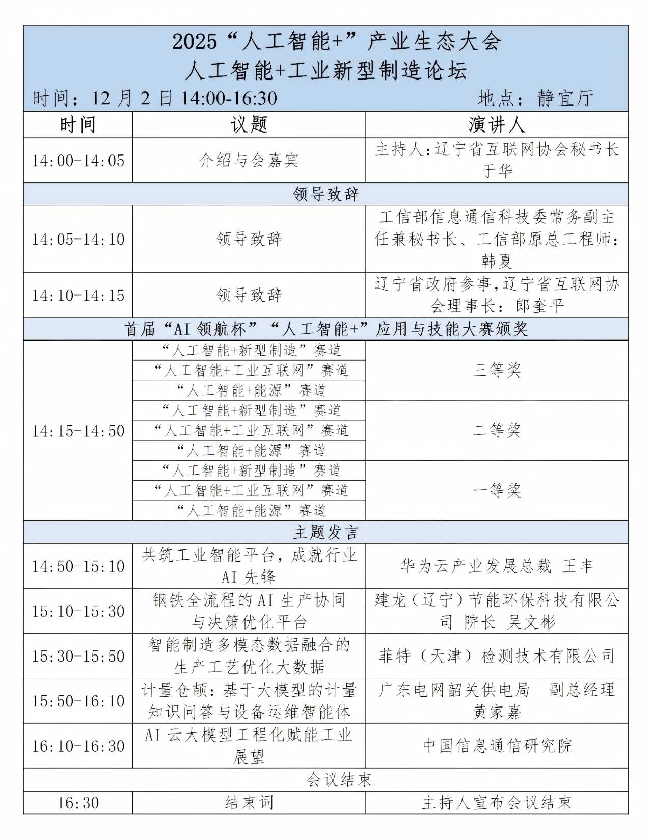 由中国互联网协会主办的2025“人工智能+”产业生态大会,定于12月1日—3日,在北京中关村国家自主创新示范区展示交易中心举办,大会主题为“智赋链动 生态共鸣”。从工业到医疗、教育、城市治理等,人工智能作为新型生产力,正打破传统产业转型壁垒,成为经济发展核心驱动力。人工智能+工业新型制造论坛作为本届人工智能+产业生态大会的专题论坛之一,由中国互联网协会主办,辽宁省互联网协会联合主办,将于12月2日下午在北京中关村国家自主创新示范区展示交易中心—会议中心—静宜厅举行。