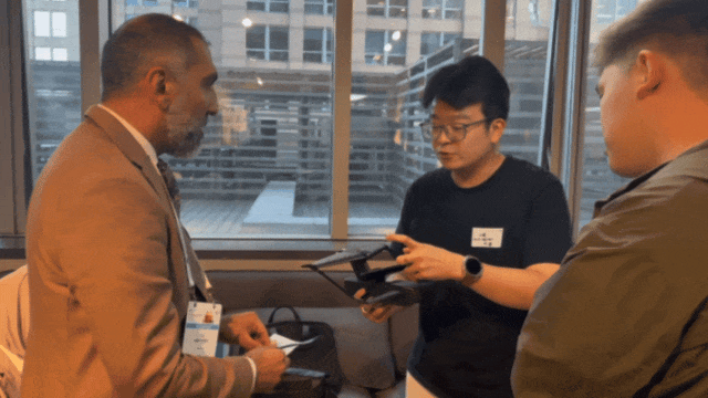 一位外企代表俯身细看:“你们怎么解决目标识别?”在技术人员的解读下,现场变成了一场技术研讨会。