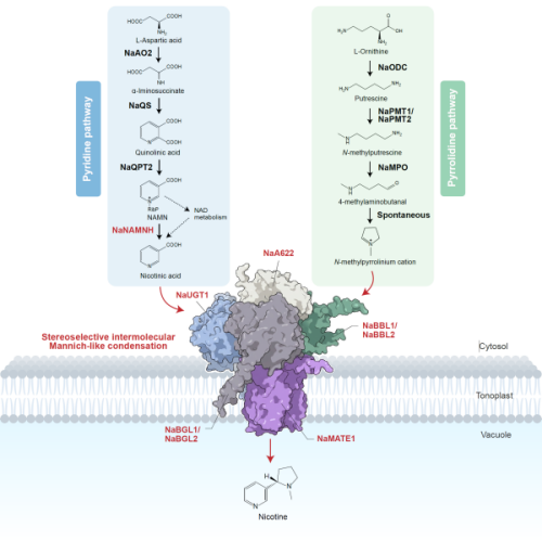 该研究补齐了尼古丁合成通路的关键环节,其提出的合成与运输偶联的代谢通道范式,为高价值天然产物生物合成的效率提升提供了理论依据与工程化策略。
