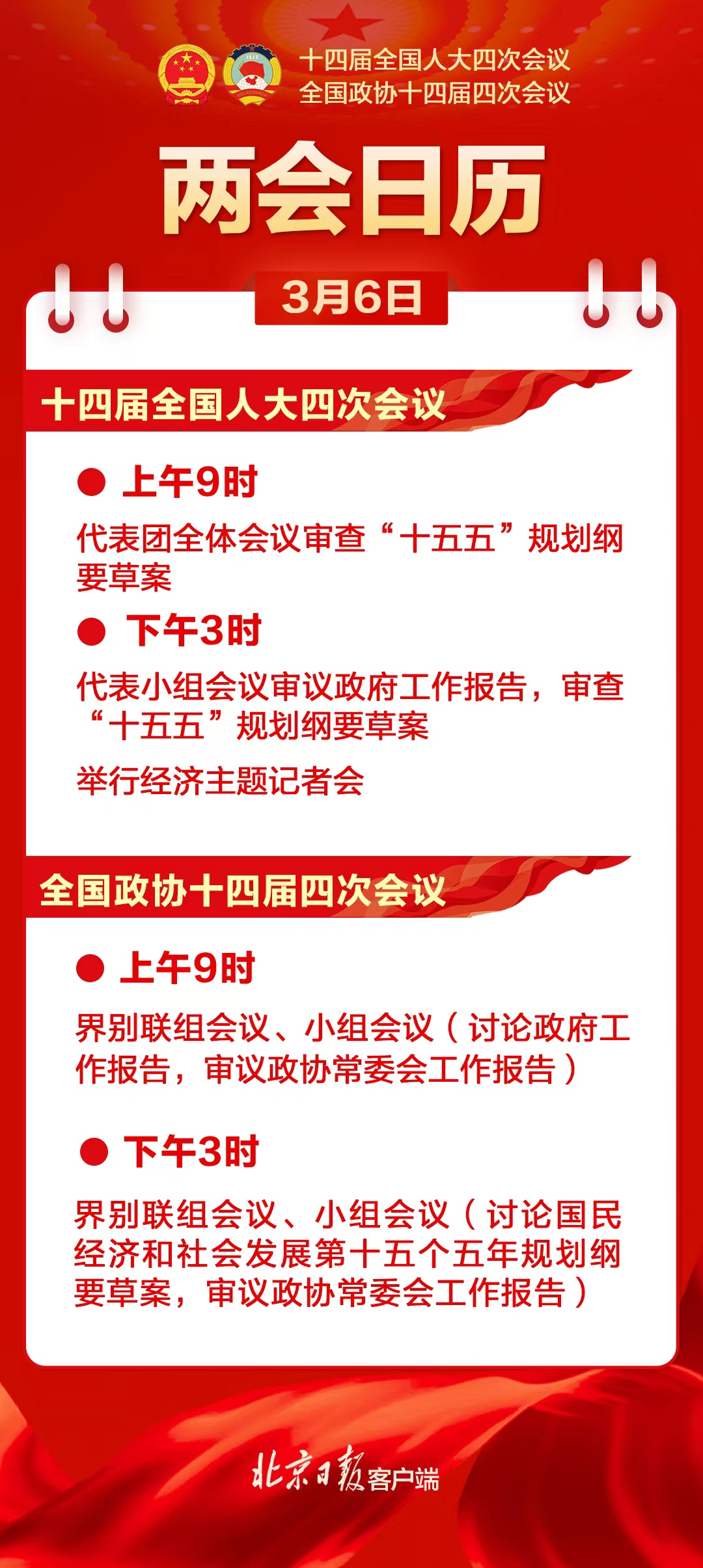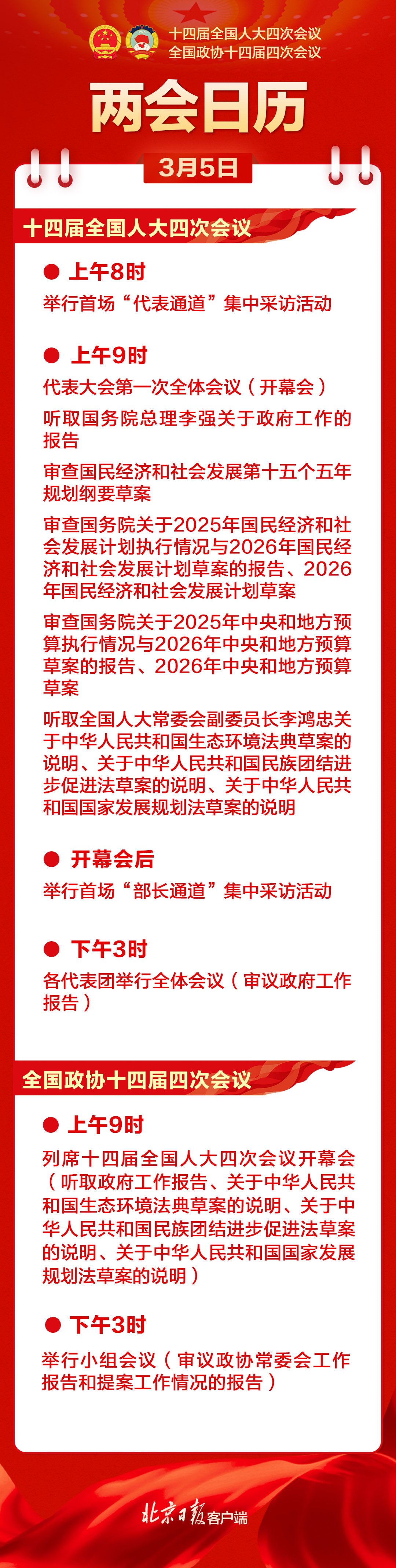 两会日历来啦!3月5日至12日日程安排