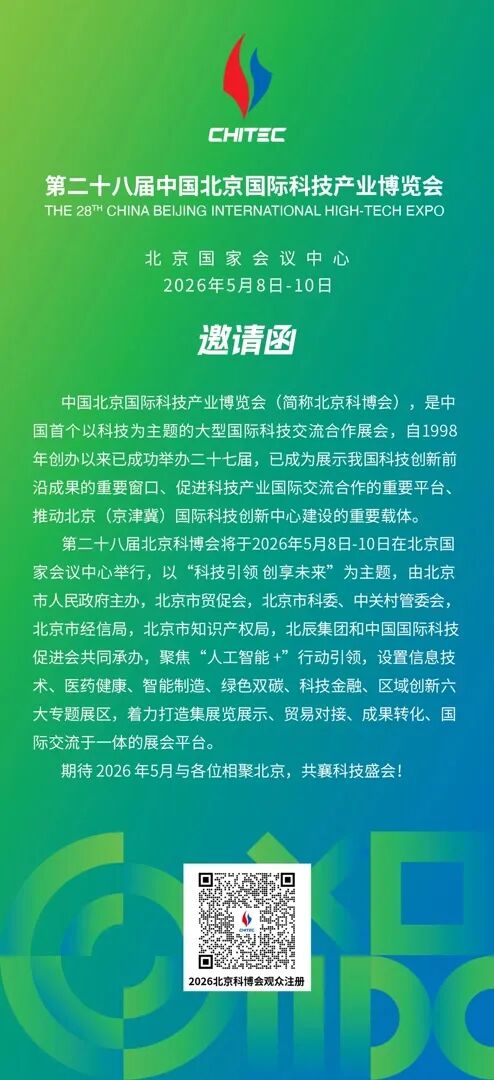 在此,也诚挚邀请国内外科技创新企业、科研机构、投资机构、行业协会及各界朋友,于2026年5月8日至10日相聚国家会议中心,共赴科技盛宴、共商创新合作、共创美好未来!